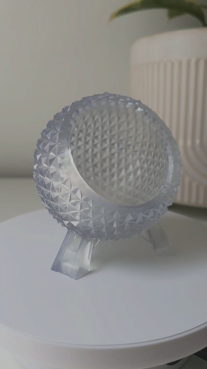 3D printed in high-clarity resin, this is the very first resin creation in our shop—and it shows. The geometric surface captures light beautifully, bringing out an incredible level of detail and dimension that’s as futuristic as it is elegant.